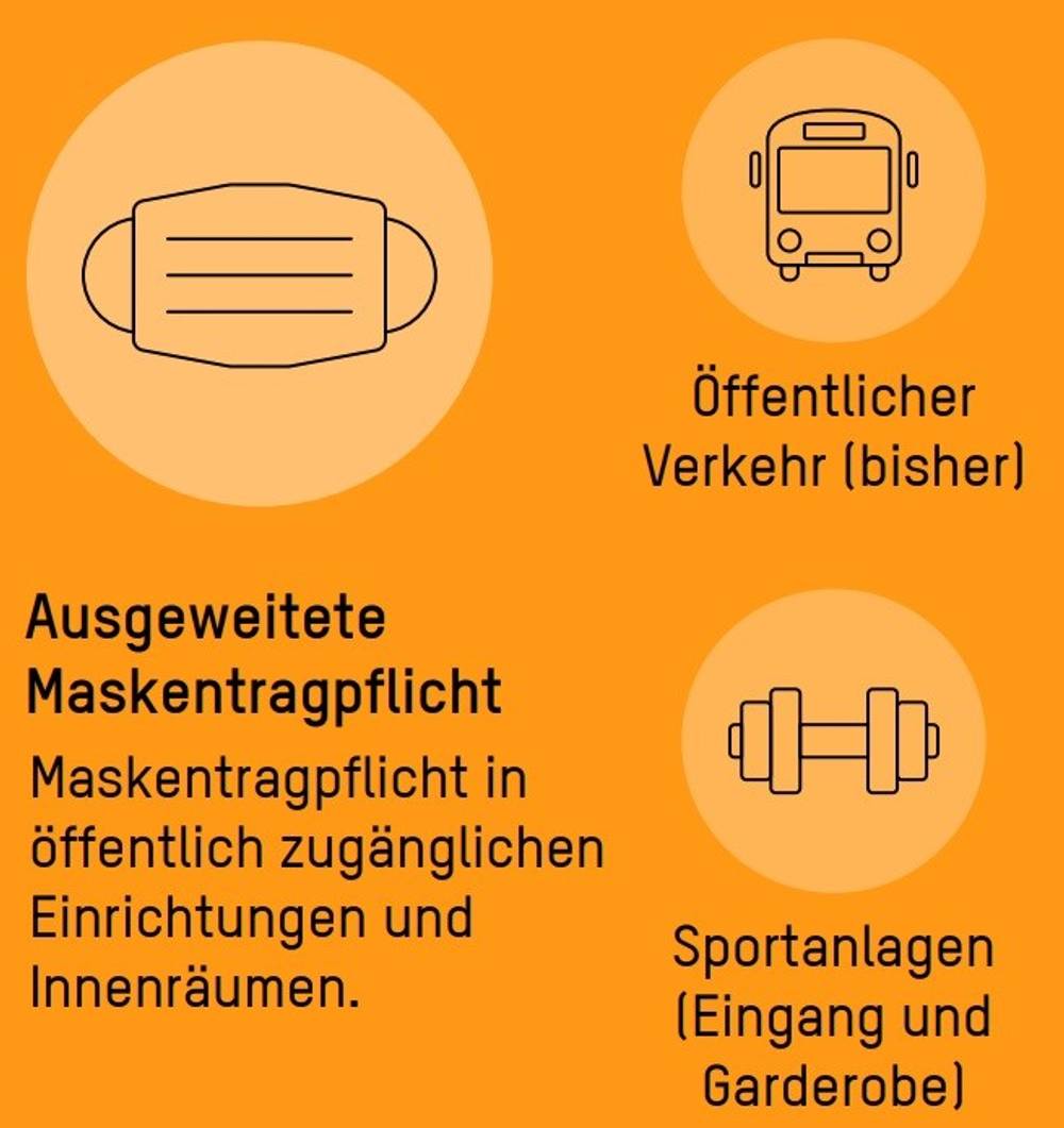 Ab Montag, 19.10.2020 gilt in Eingangsbereichen und Garderoben von Sportanlagen eine Maskentragpflicht. Das bisherige Schutzkonzept bleibt zusätzlich bestehen.